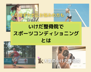大宮にあるいけだ整骨院では、左右差や姿勢の歪み、関節の動きに着目しながら、体を動かしやすい状態へ導くためスポーツコンディショニングを提供しています。